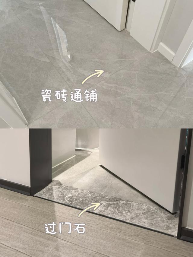 同材质的地板或地砖能够使用全屋通铺,但不一样的材质之间,像卧室木地板,客厅瓷砖之间的接缝处,一般会选择过门石。