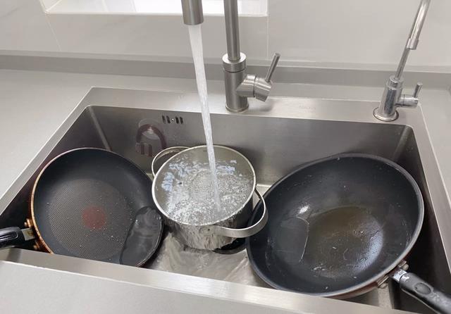 双槽能分区使用,固然方便,但不得不承认,两边的区域都很小,稍微大一点尺寸的锅、案板都放不进去,用起来有明显缺点。